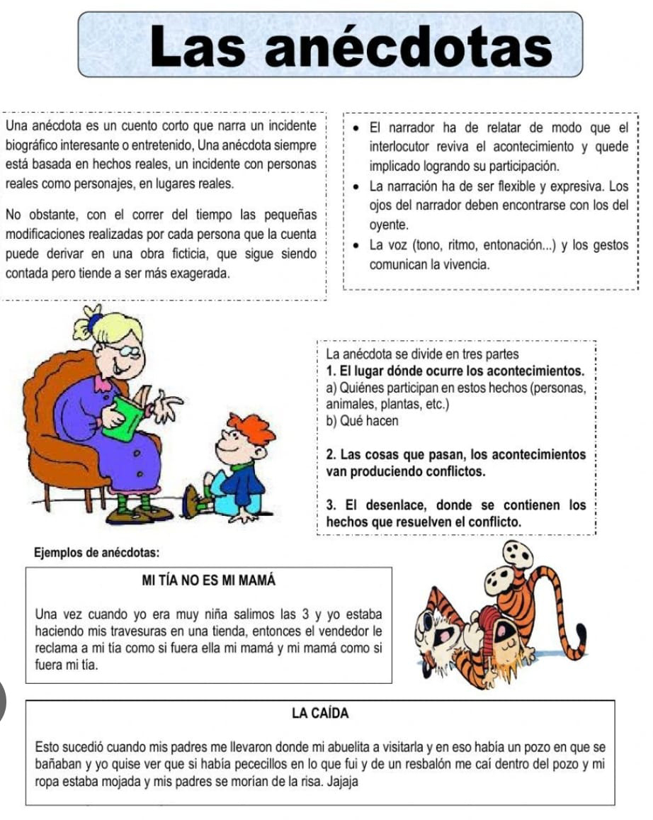 1.Lee atentamente lo que es una anécdota y los ejemplos: